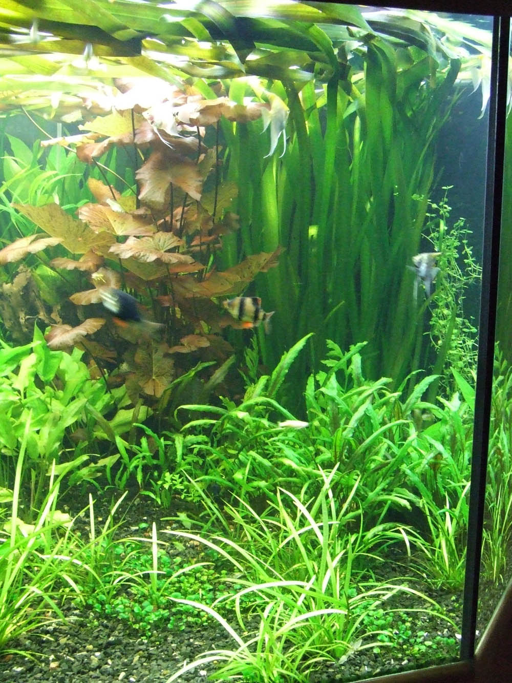 Так как перезагрузка у меня заняла почти две недели (еще и горячую воду отключили), то много растений погибло  а некоторые которые вы видите приходят в себя сейчас. Нимфея побрасывала листья, но выпустила много новых, некоторые эхи покрутили листья, но выпускают сейчас новые прямые листочки. Вобщем наращиваем сново массу растений. Рыбы так много (особенно скалярий) так как это рыба уже моего разведения, собираюсь тут на форуме раздавать/продавать.