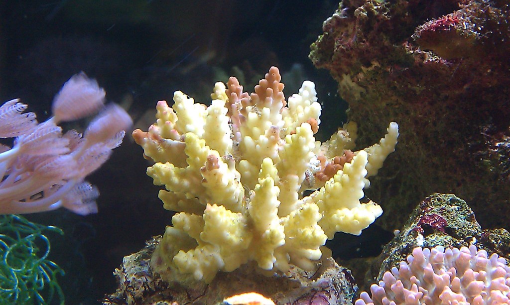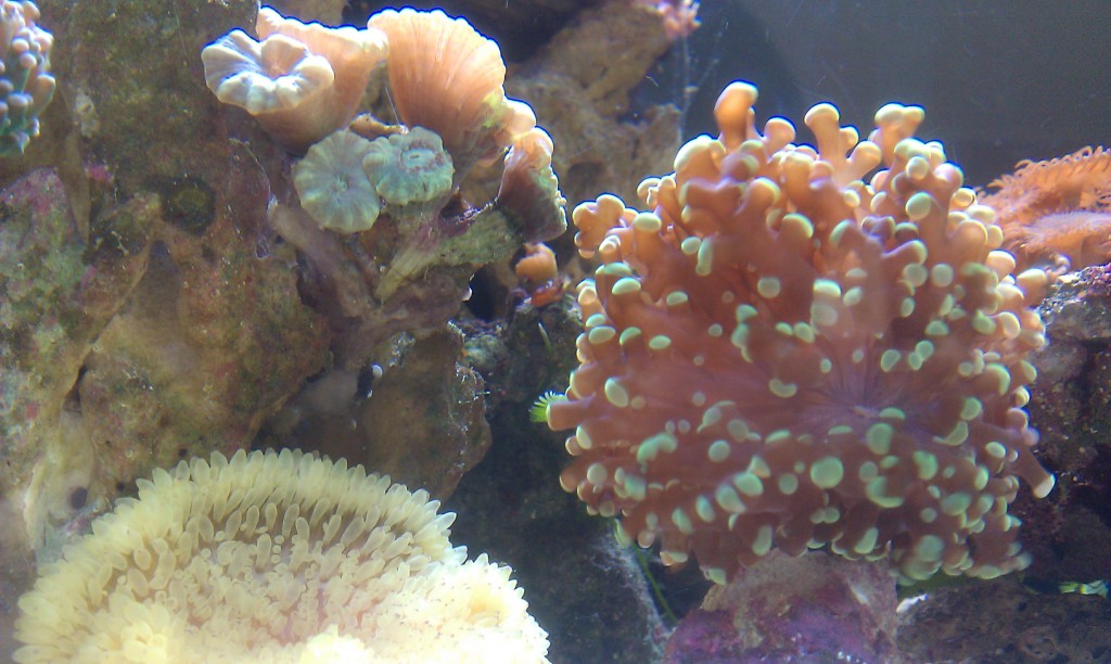 Так там уже подниматься нечему. Полипы и покровная ткань на скелете. Все облетело, должен остаться белый скелет. Потом скелет потихоньку темнеет и обрастает Каролиной, и всякими водорослями. Все кораллы с мелкими полипами ( которые я видел ) нежные слишком. Возможно есть какие-то СПСы, которые могут с мягкими и рыбами жить, пусть опытные товарищи посоветуют.