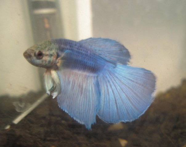 и есть синий с розово-сиреневыми плавниками, который болел 3 недели, но выздоровел. Гнзда строить пока отказывается.
