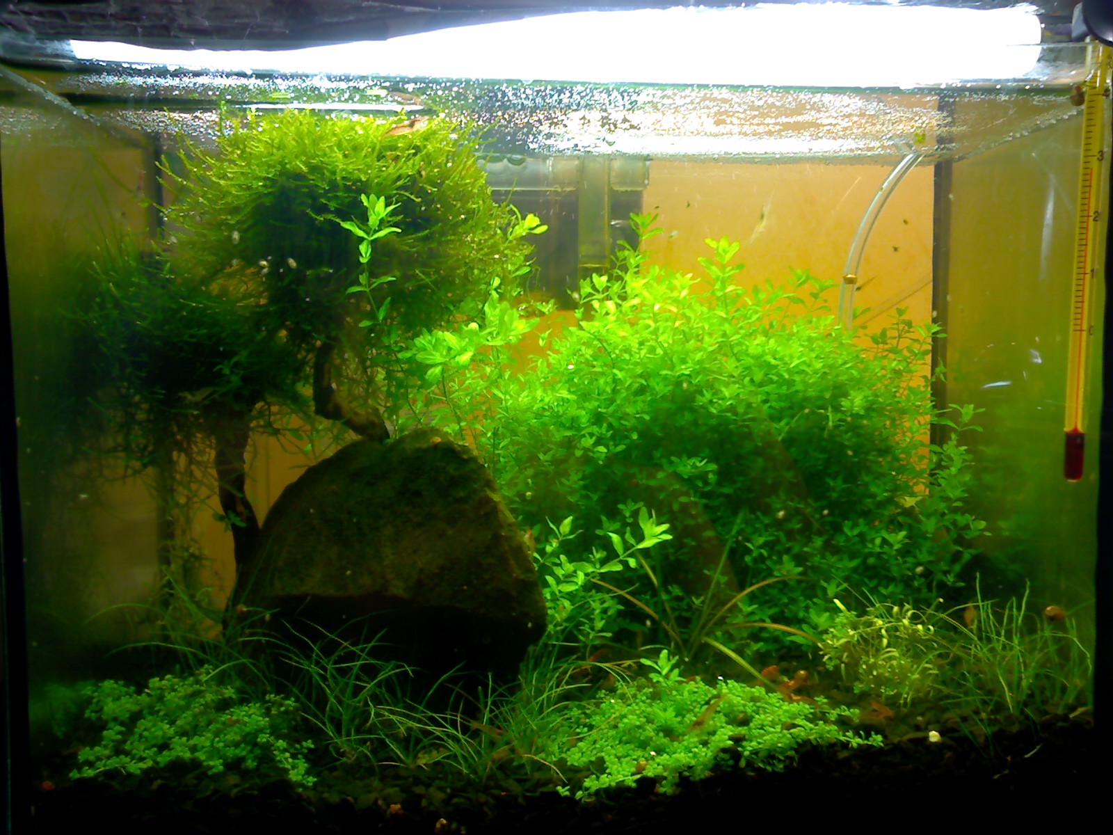 Аквариум маленький 12 литров. Стоит 3 лампы по 8 ватт. Все отлично растет. Хемиантус микрантемоидес не успеваю стрич. Куба тоже растет. И ситняг. В аквариуме супер заряженый грут из трорфа и гумуса. Подается СО2 и УДО.