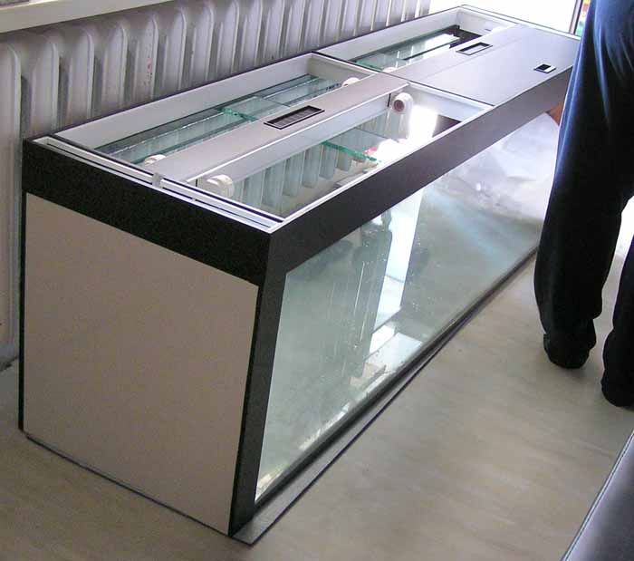Заказали мы в одесском магазине (кому интересно название, тогда пишите в личку), в начале марта 2011 года, аквариум 185х50(ширина)х60(глубина)см, крышку для аквариума и тумбочку с металлическим каркасом.