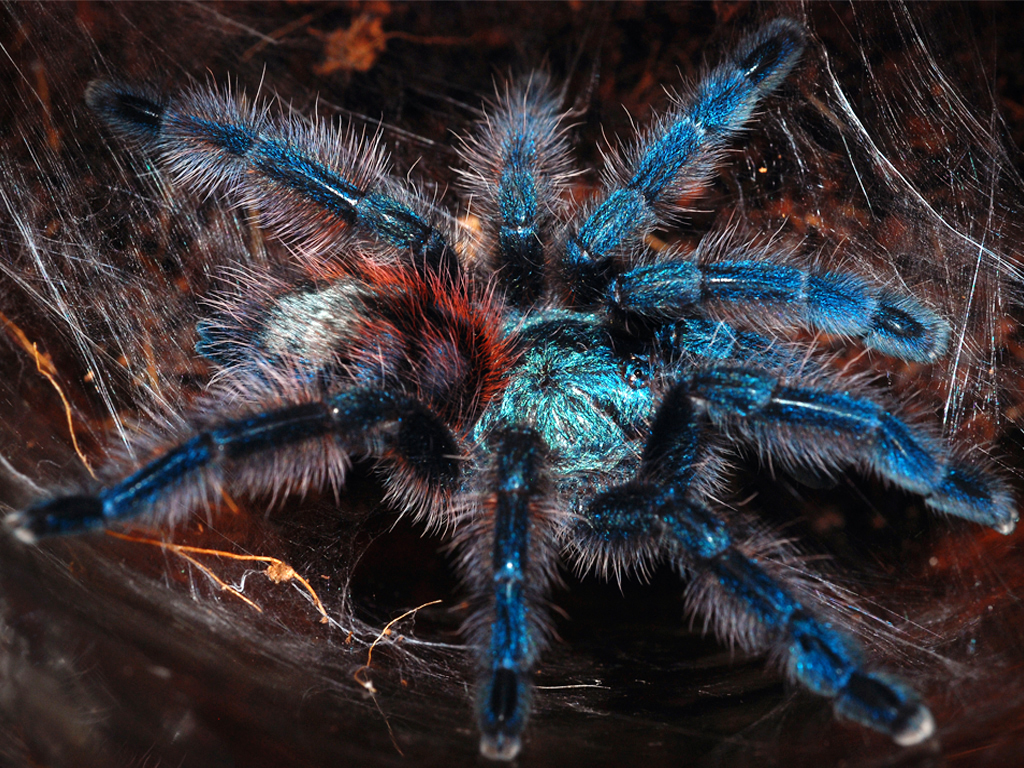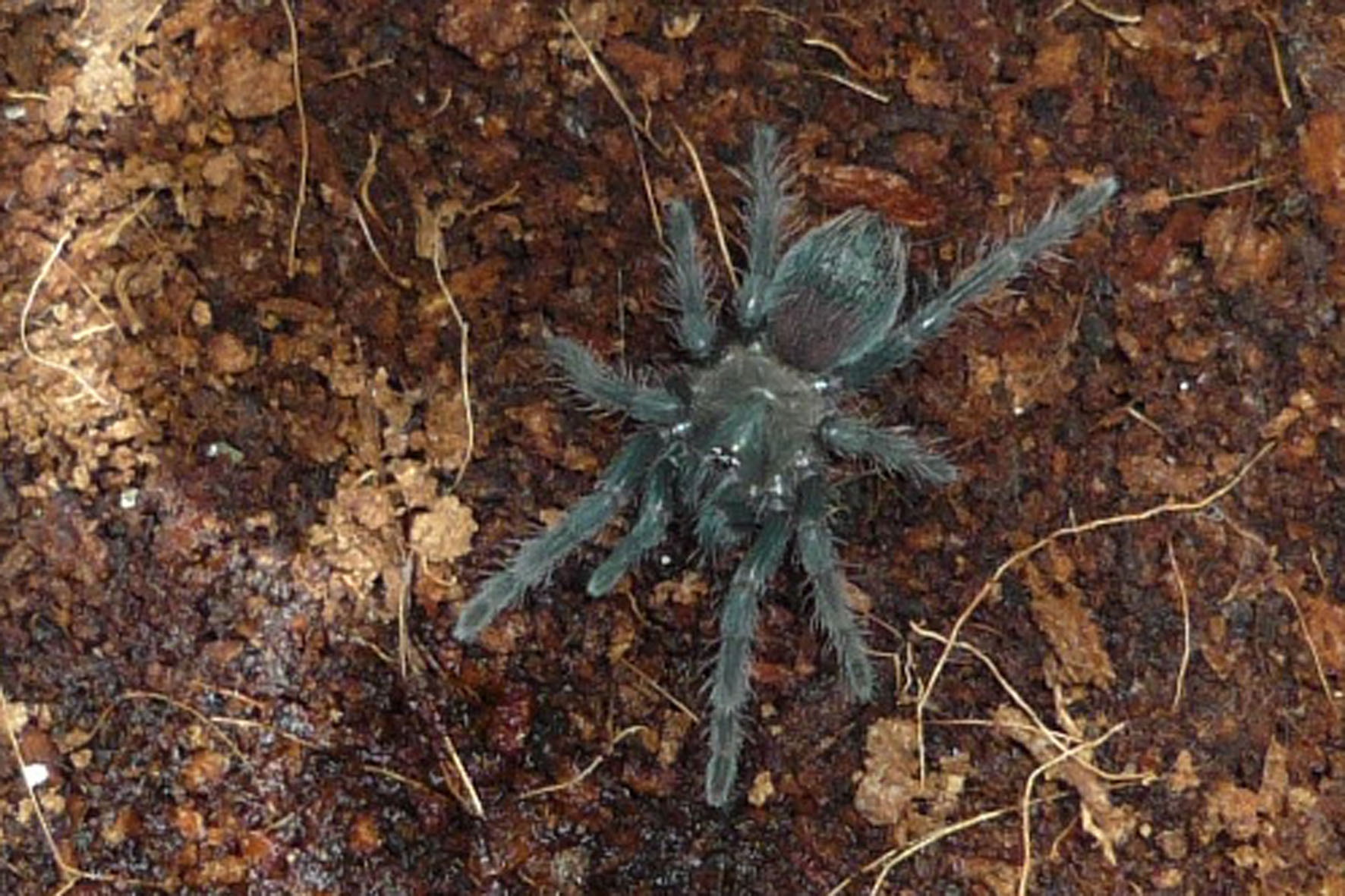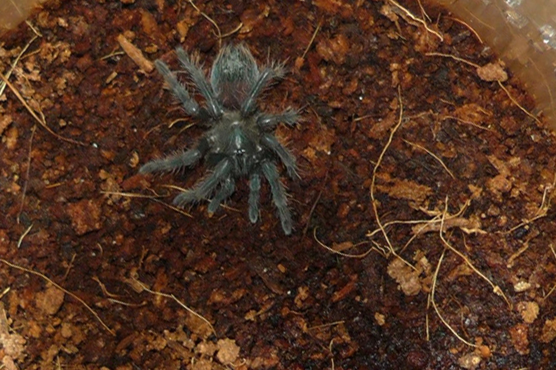 Chromatopelma cyaneopubescens 6L. Отъедается.