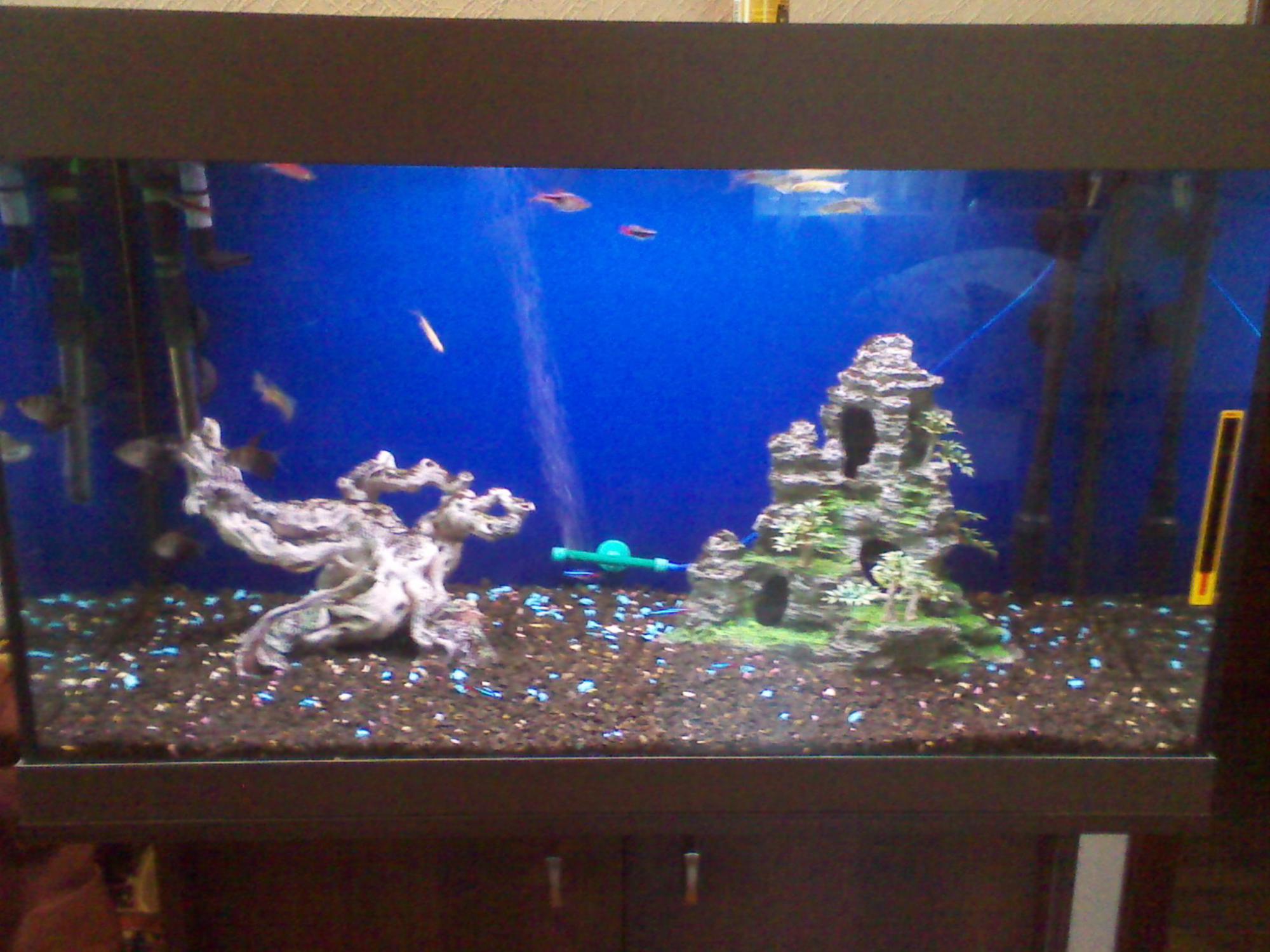 Здравствуйте! Я запустил аквариум 1 год назад, насадил травы, рыбок заселил, вроде все по фен-шую сделал. Пользовался удобрениями JBL Ferropol, Ferrotabs и Ferropol 24. При подмене воду не отстаиваю, использую Biotopol и Denitrol. Месяца через 3 завелась черная борода, боролся средством JBL Algol, зараженную траву уничтожал, в итоге поборол, но растючки осталось мало. Удобрять перестал, трава стала плохо расти и появились бурые водоросли. Меня эти войны с водорослями утомили, выбросил оставшуюся больную траву и забросил это дело, просто кормил рыбок и все. Сейчас хочу возродить растительность и сделать акву типа как на последнем фото.