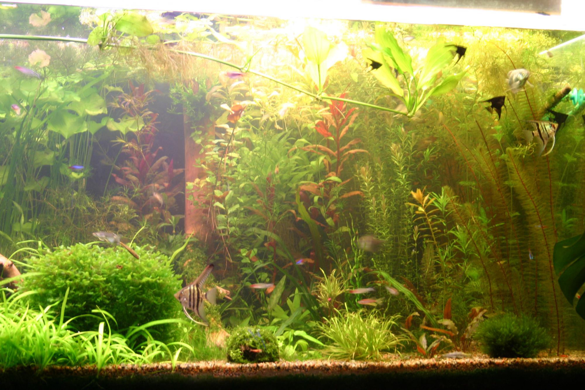 Причина перезапуска хочется стремиться к лучшему! (было много нитчатки которая приросла к грунту и в пушистых растениях( 70% растений пришлось выбросить при парился выковыривать) выбрать не возможно. Нитчатка не прогрессировала , растения перли так як треба особенно гигантская валиснерия за неделю выпустила около 9 новых отростков ширина листа с 1см до 2,5 см изменилась, причина ( установил СО2 пока на браге))