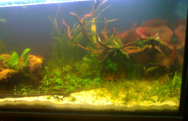 высадила почти все растения - стаурогин, глоссу, ситняг игольчатый и карликовый, на корягу прикрепила несколько пучков мха и маленькие папоротники. в общем, весь вечер провела в аквариуме, но результатом пока довольна.