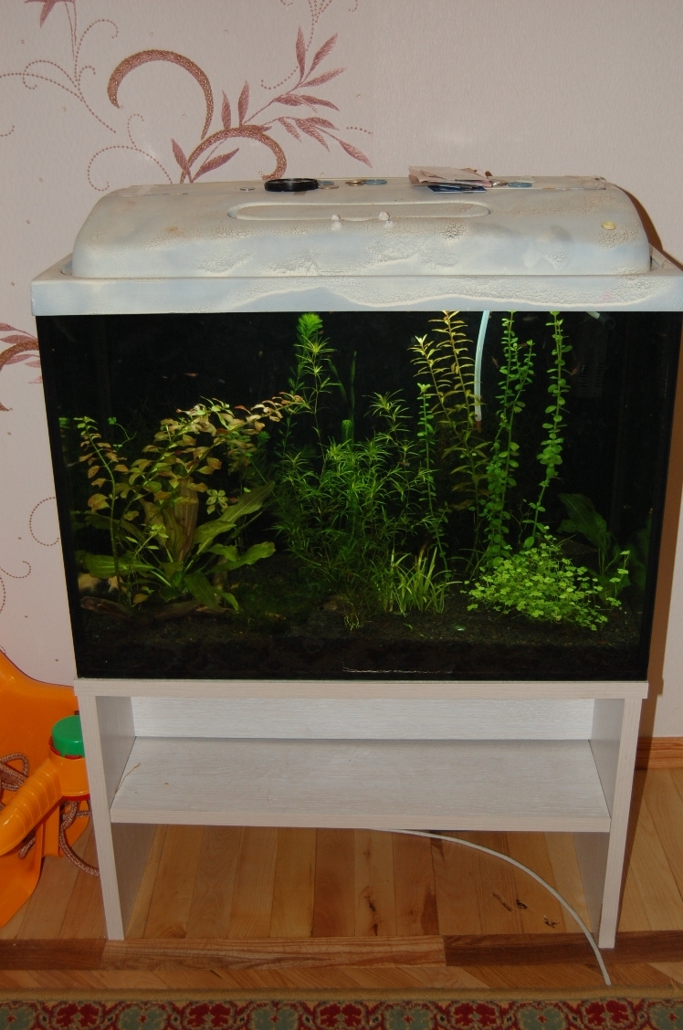 Аквариум в пользовании 2 года. Состояние на 4. Фон - чёрный.