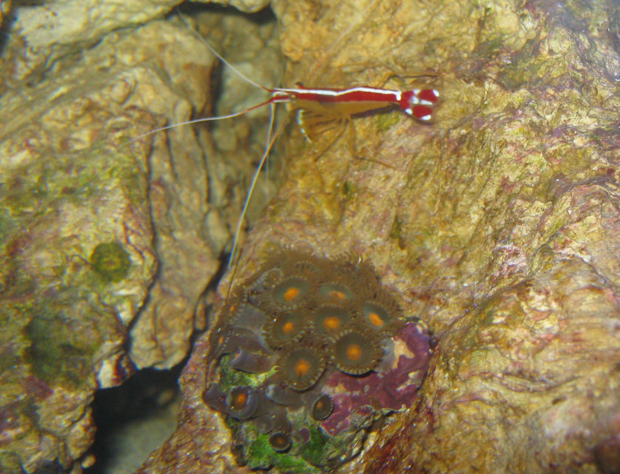 В воскресенье появились новые жители Отшельник вовсю полирует камни,а креветка вылазит из камней только поесть и по ночам  Сегодня утром обнаружил у одного оцеляриса,пощипанные плавники.Начали сильно драться(видно с голодухи),после очередной трепки(хватает за плавник так,что бедняга не может вырваться секунд 10),мое сердце не выдержало и начался ужин  Вот какое пузо(щипанное  )