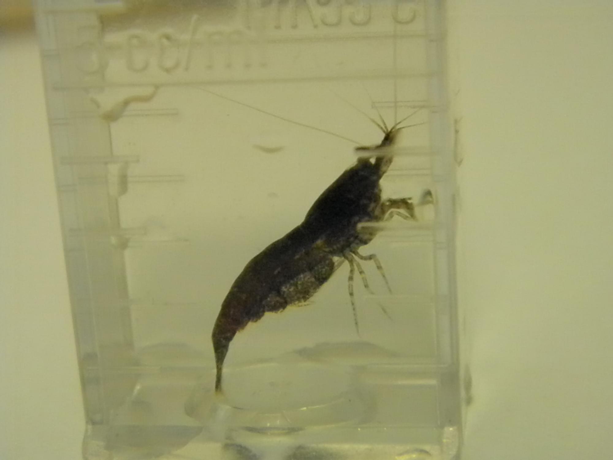 из голубых креветок у нас как правило 2 вида: этот, что я указала и еще Каридина голубая пчела, у последней есть белые полосы и она крупнее.