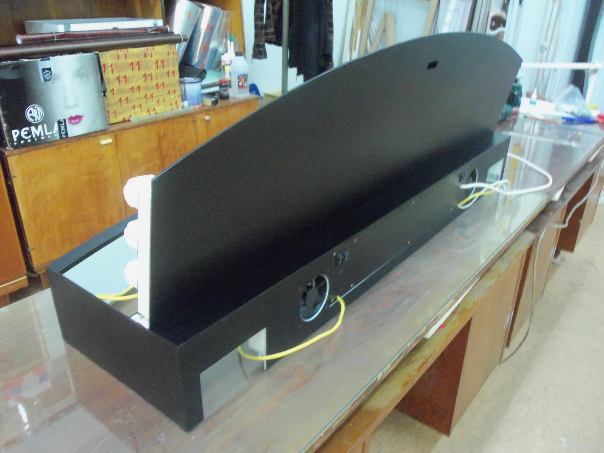 А еще и подвесной светильник на 6 ламп по 54Вт , и крышка с поднимающейся передней стенкой, и другая всякая - всячина, но это потом, сейчас уже поздно. При следующей встрече подробно опишу, так-же, другой сложный прибор из акрила, композита, структурированного пластика и т.д.