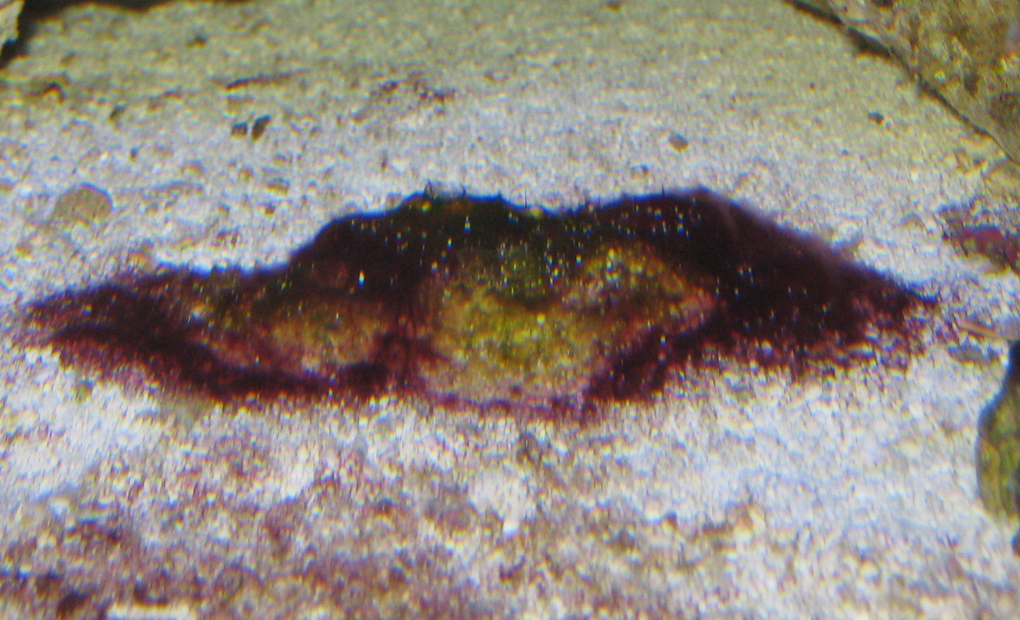 Остаток самого страшного места В воскресенье,циано бушевало по полной,сегодня утром обнаружил значительное уменьшение.На нем начали плявляться,какие-то зеленые обростания и гораздо уменьшилось колличество.Действия для борьбы с бякой-уменьшил свет мг на 2 часа,течение направил больше вниз,кормление урезал,песок не сифоню(собираю ошметки гадости с поверхности воды),свет в водоросливике в противофазе основному,пенник на самую мокрую пену(работой риф октоупуса очень доволен,по сравнению с джебо он работает  ),ну и самое главное "надежда"  .Праздновать победу пока еще рано,но она не за горами!!!
