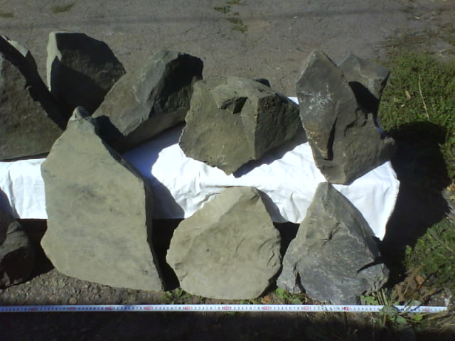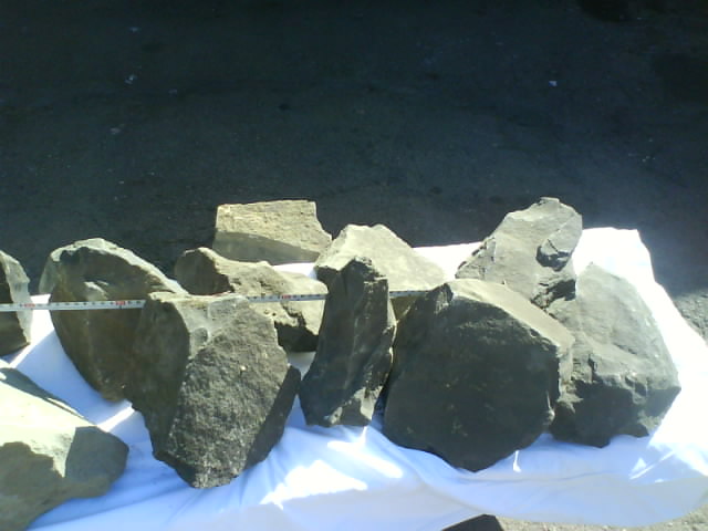 Выставляю немного камней. За качество извините, не фотограф, да и снимал телефоном. Для масштаба кое где видно ленту рулетки. Камни плоские и крупные. И это только часть. Для аквариумов с цихлидами есть классные камни формой скалы, плоские, для создания гротов. Выбирайте.  камни по 3грн за 1 кг.