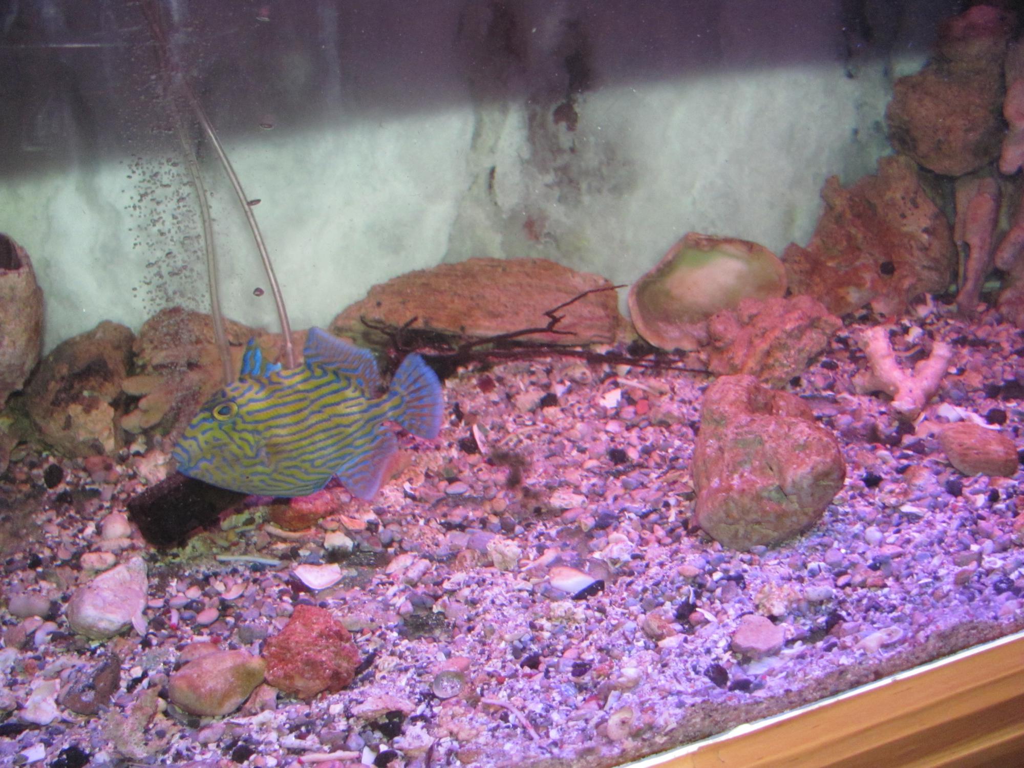 А я вот,своего бродягу зафиксировал.В воскресенье притащил с ЖД вокзала от ГРС-са Жени.Корм берет с рук,уже стал на довольствие,через месяц в рыбник пойдет......А кличут его Псевдобалистес фускус,или просто Мотя.