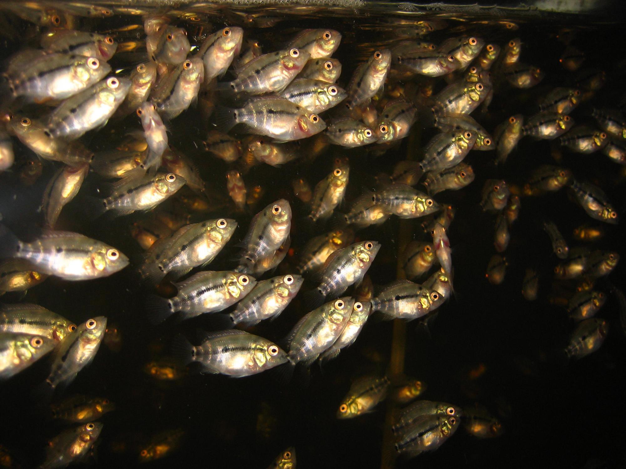 Мальки начинают набирать цвет.
