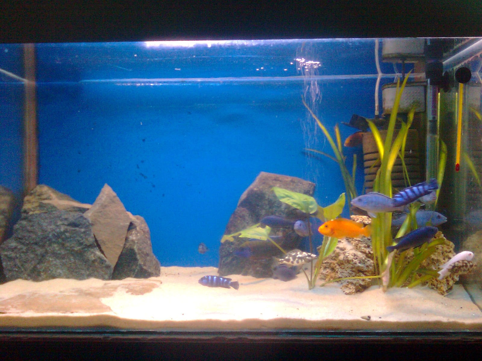 Вот он - мой аквариум  Цихлиды малави, 200 л. В основном молодняк, уже заметно подросли, были совсем мелкие.