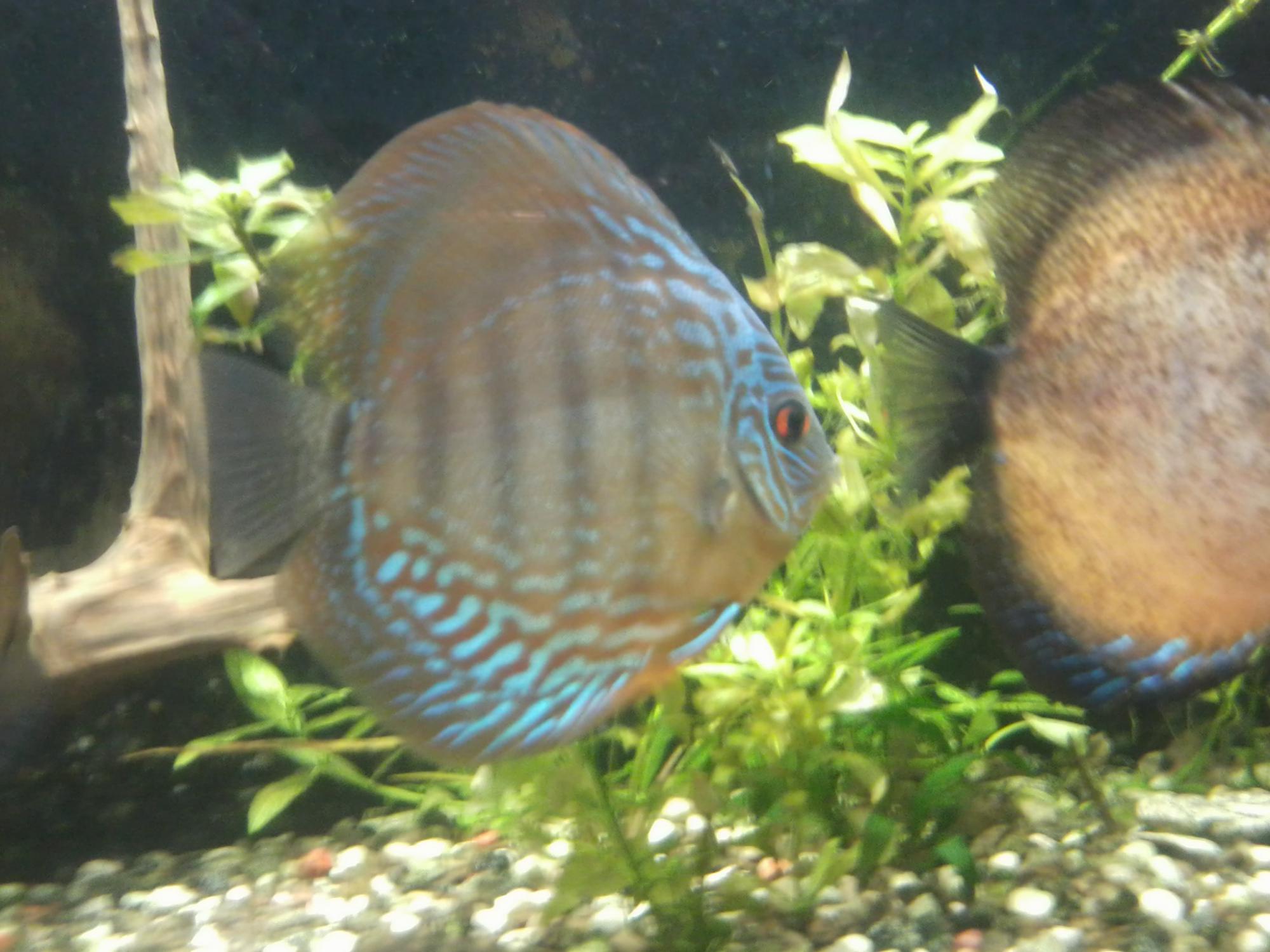 Зацените малыша который получился от моих дискусов с крапом.Малыш вроде на туркиса похож.