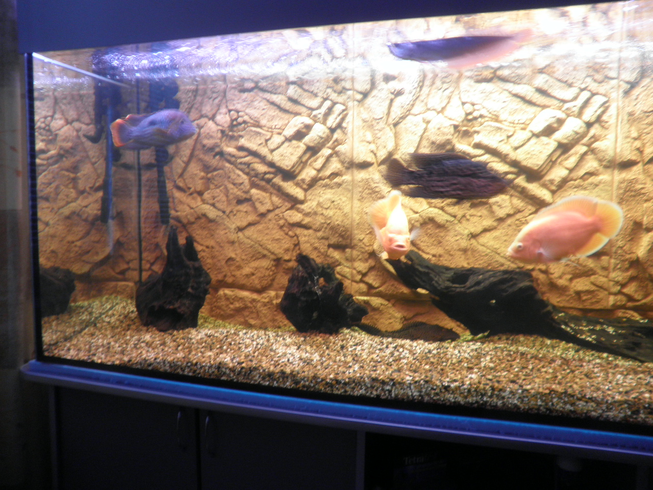 Размер рыб 20-22 см возраст полтора года, начали делиться на пары. Объём аквариума 460литров фильтрация 3000л/ч Свет две лампы:- Т5 PawerGlo и Philips 6500к.