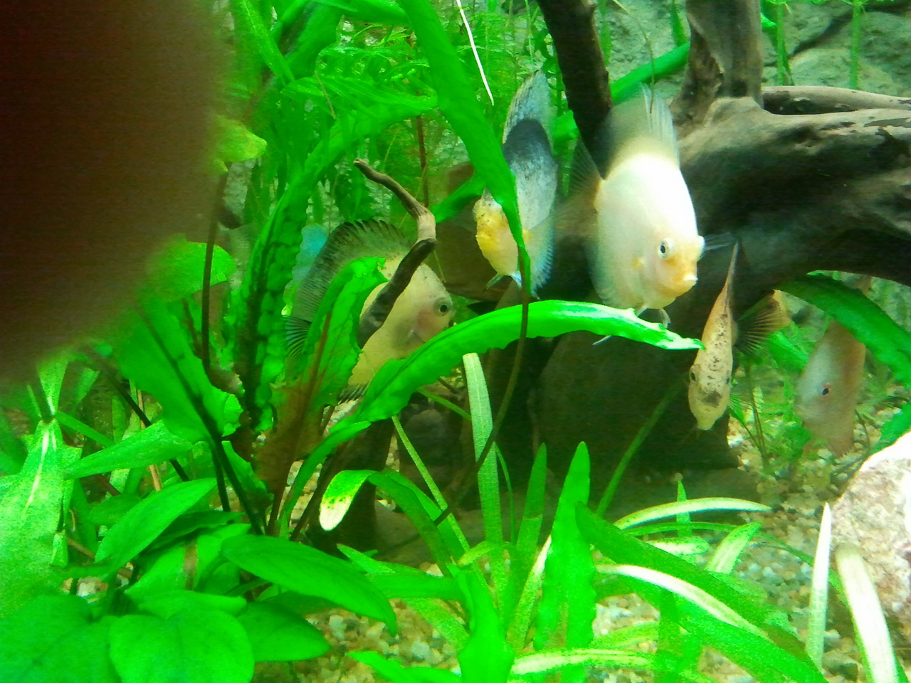 Здравствуйте, уважаемые дискусоводы.Прошу совета, т.к. я пока начинающий, посему сам боюсь натворить делов, ибо инфы в нете слишком много,в основном противоречивой,касающейся моего вопроса.Имеется 9 дисков размерами от 4 до 7 см, живут у меня около месяца.Сразу при покупке не заметил, потом пригляделся-у одного из них изначально были увеличены глаза( были и большего размера, чем у остальных, и более "навыкате"). Не обращал на это внимание, ну, думал попался "глазастик".Он довольно активный, всегда нормально принимает пищу(сейчас в основном заморозка артемии и начал кормить мидией).В последнее время мне показалось, что пучеглазие прогрессирует (или только показалось?),и не обратил бы внимание, если бы не тот факт, что сегодня другой однозначно не глазастый изначально диск выпучил один глаз(( и неохотно принимает пищу,все едят, а он чуть клюнул и отплывает, а все остальные вместе с ним со вчерашнего дня стали очень пугливы, даже при кормежке может быть несколько раз такое: ни с того не с сего кидаются в рассыпную, а корм тихо падает на дно...потом все же подбирают,но раньше так не шугались.Начитался про туберкулез и водянку, крыша едет-как правильно лечить, и нужно ли.Единственно что, пока не делал тестов воды-может ли это быть причиной повышенного аммиака или чего-либо еще.Аква 350л,грунт+растения(не так много), внутр. фильтр Juwel с биосубстратом, аэрация, подмена 35% раз в неделю,температура 29-32 град