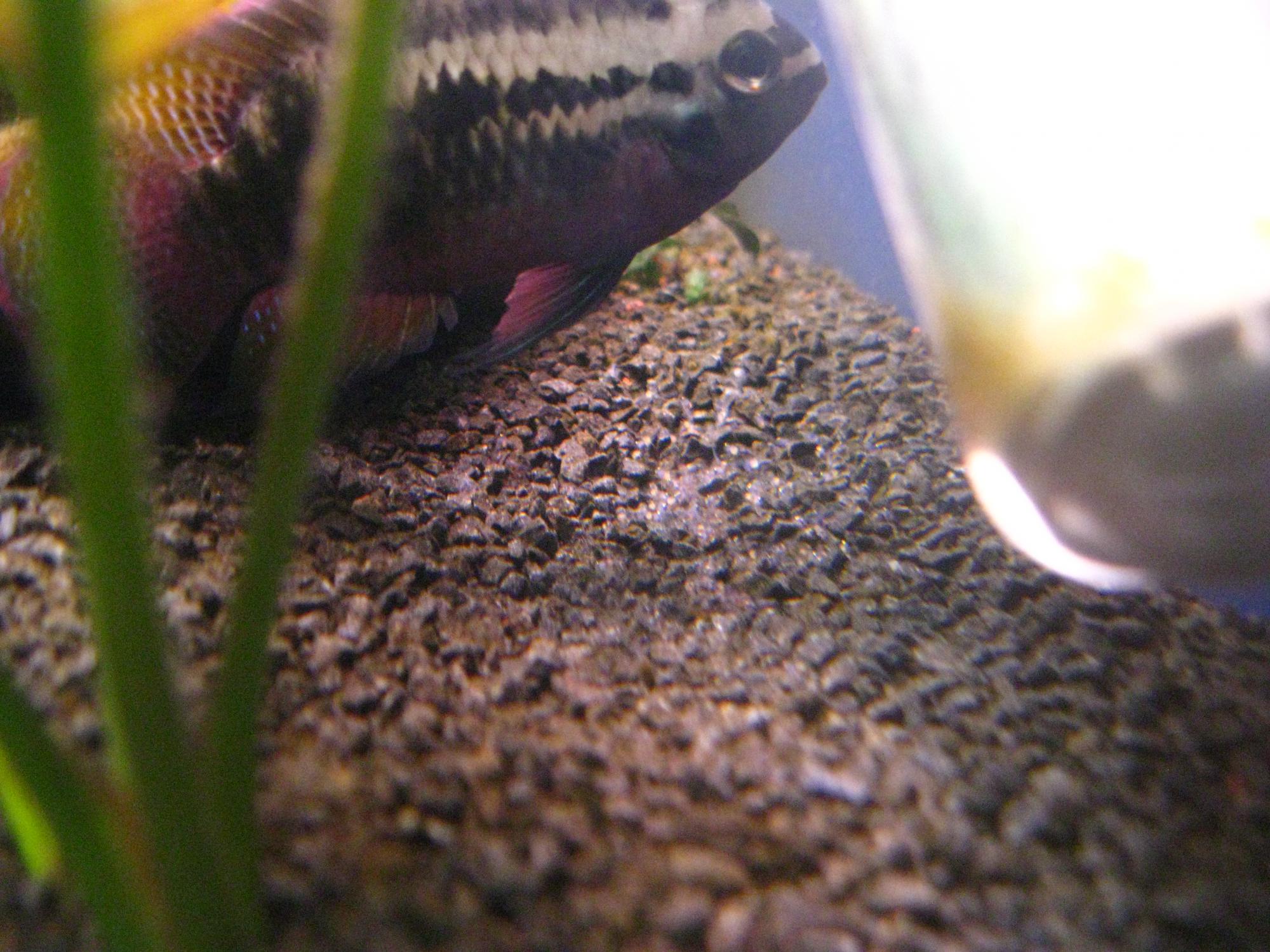 поплыл выводок пельвиков. плавал полторы недели - выше деток криптокорин (5см от грунта) не подымался. Родители берегли усиленно.