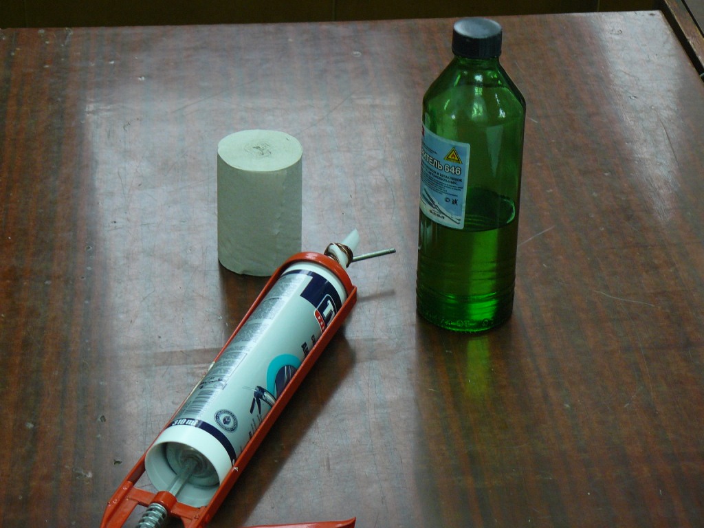 Герметик, растворитель понятно для чего, а вот туалетная бумага к чему?))))Я ее использую как и все человеки по назначению))))), и для подкладывания под дно аквы, чтоб не испачкать герметиком поверхность. Так, все готово: стекла разложены и обезжирены, можно приступать к нанесению герметика.