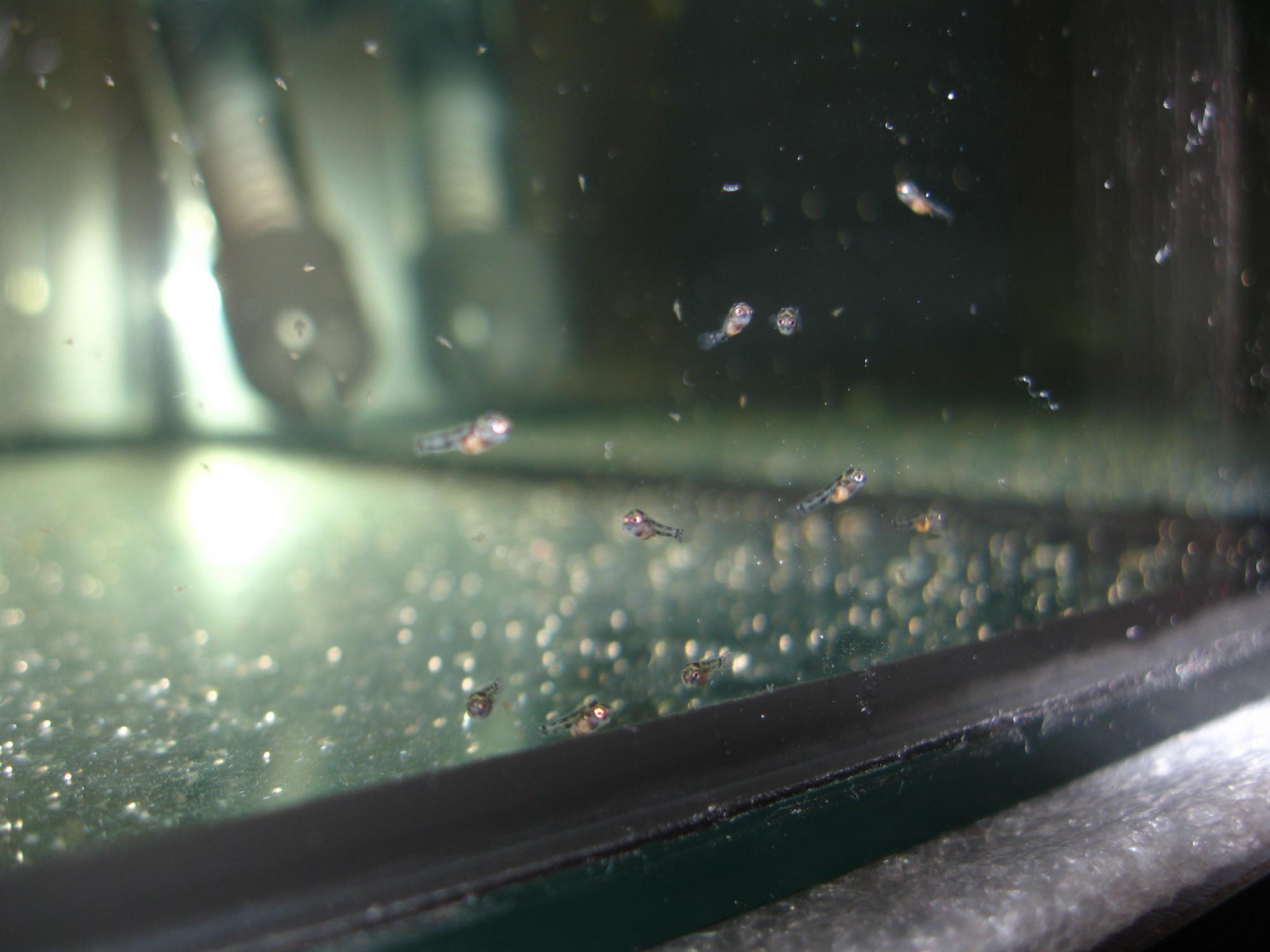 начал кормить науплиями артемии - поплыли сегодня.... к 11-00 началось движение малька...а как подкинул науплий-оживились...едят ли - точно сказать не могу(под корчём темно) ...