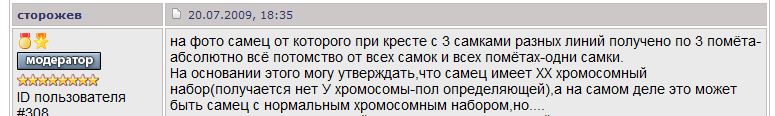 Вы прочтите сноску в том моем посте , гле я писал Вам словами Раневской : " ПиОнэры - идите в жопу" см.пост № 86 и привел сноски -фото 1,2ниже. Насколько я понимаю дауну нужно отпечатать всю статью , и не понять , что зто ему объяснили в двух словах см пост № 88. На форуме Клуб Гуппи Сторожев пытался объяснить Вам тоже самое , что и я в пост № 88. см. фото3. Так-же пытался вдолбить , как и я выше в теме что на соотношение пола влияет не гидрохимия воды /смотрите свой моразм выше в посте о Харьковской воде/ и не внешние показатели содержания рыб см. фото 4. У Вас какая-то паталогия. Задавая вопросы на двух форумах одновременно - вы все пытаетесь поймать меня на ошибке . Кто-то из Русских классиков Крылов кажется в басне : " ...чем под других рядится , не лучше ль - на себя оборотиися.
