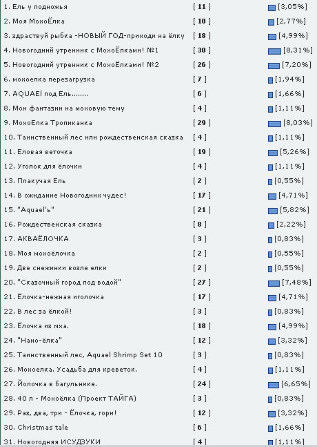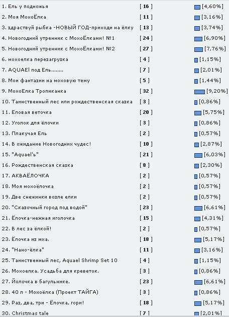 судя по голосованию на аквафанате... не видать мне даже 3 места((( ЖАль.. Увы многие, кто хотел проголосовать, не смог. Но я не в обиде))) Новогодняя суета))) Всё я понимаю. Но всё равно громаднейшее спасибо всем, кто всё же проголосовал)))