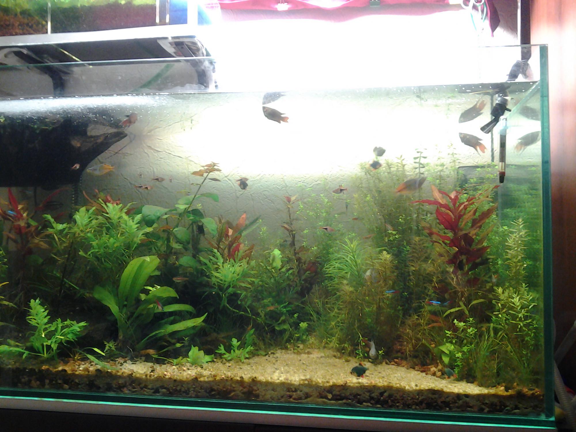 Аква - 10 неонов, 10 красных неонов, 10 расбор, 6 эритрозонусов, 2 пары макроподов, 2 боции, 7 ото, 5 радужниц, 7 мшистых барбусов, 3 попугая, лабео зеленый.