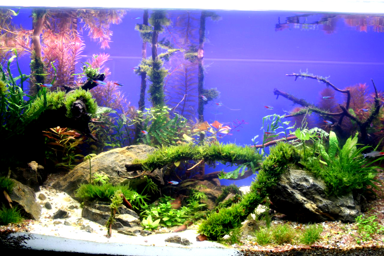 я у себя проблему с фоном решил чень просто.У меня есть несколько листов пластика разных цветов,они просто навешиваются на заднюю стенку аквы как слайды.Везде кроме черного используется подсветка как верхняя так и нижняя.Таким образом я могу менять фон за 30сек.