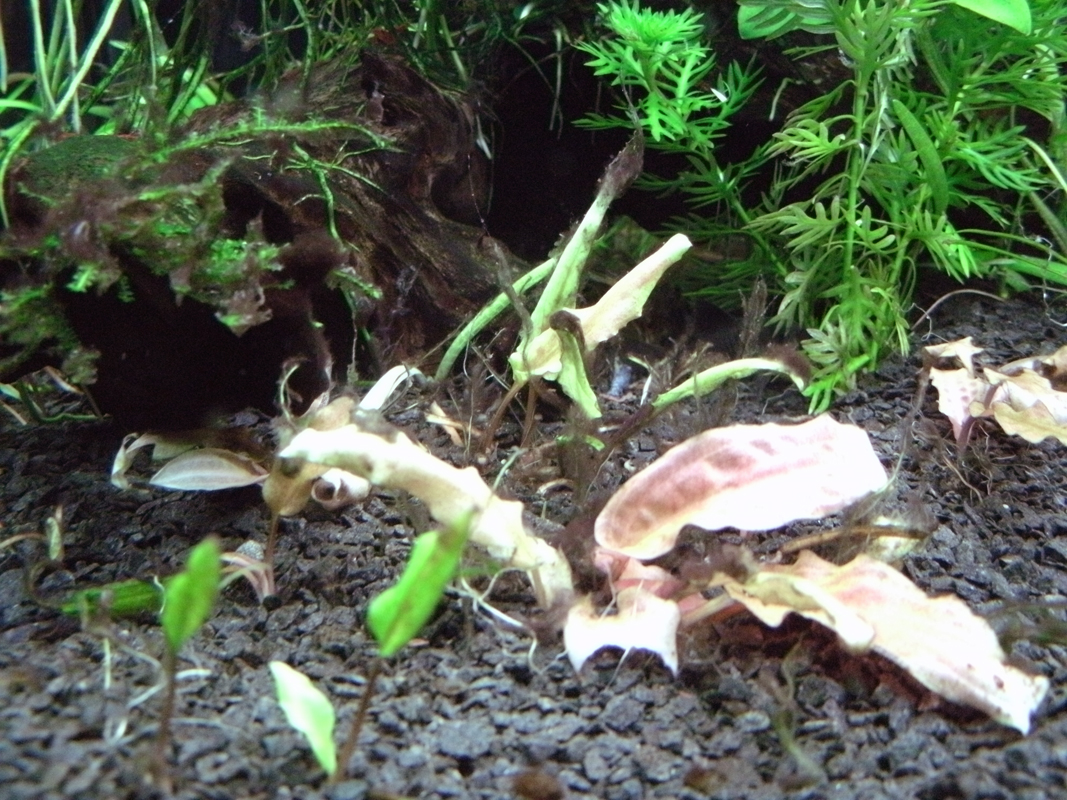 Сегодня (13.02.2010) пересадил одно растение (было в центре аквариума) и высадил еще несколько новых (спасибо zimbabwa!!!), а также добавил грунта