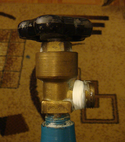 По поводу прошлого спора с вентилями-то опять таки утверждали что особые кислородные (на мед.и др.тонкое оборудование) так и стоят с завода до 300грн.Мой вентиль на балоне тоже попал в разряд "дорогих" (на фото ниже)хотя посмотрел ,он КВ-1М,не такой уж дорогой -но больше сотни.Короче решил я оставить эти ненужные уточнения с неинтерисующими ценами на вентили и довольствоваться тем что есть.  )