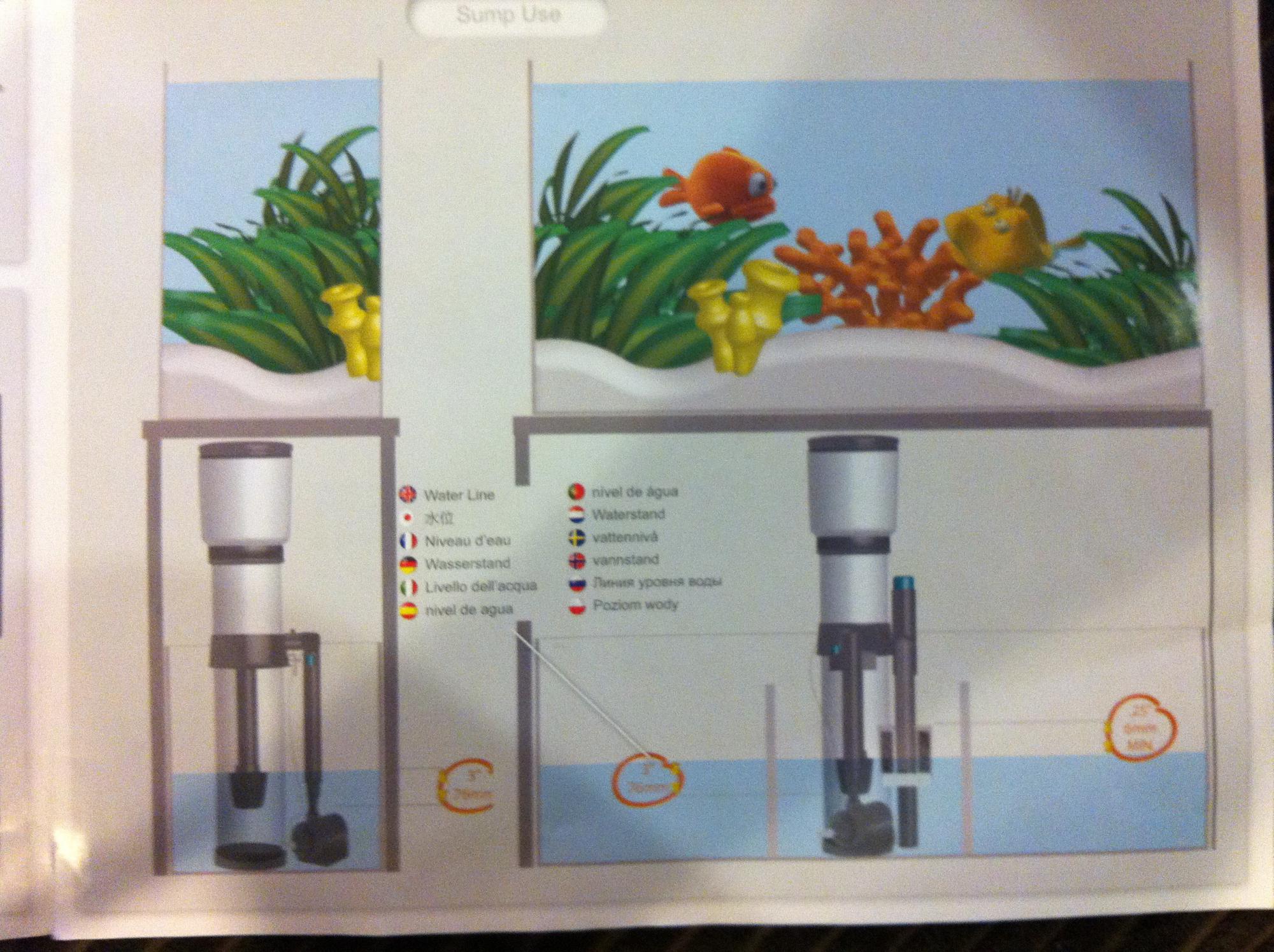 Покажите нормальную фотку со светильником на аквариуме, не видно как он устанавливается, спрашиваю потому что если вы от Нокса оверфлов будете ставить, то возможно нужно будет резать ребро, а по другому там может и светильник не дать установить его и на нем же еще фиттинг внизу располагается, а вы хотите самп поставить сбоку, тогда трубка примерно после фиттинга будет на уровне средины аквариума по высоте. Тогда нужно что-то думать как подать воду в самп.
