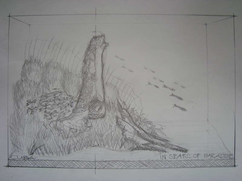 Для декора были использованы мангровые коряги. В расположении коряг мы руководствовались эскизом.