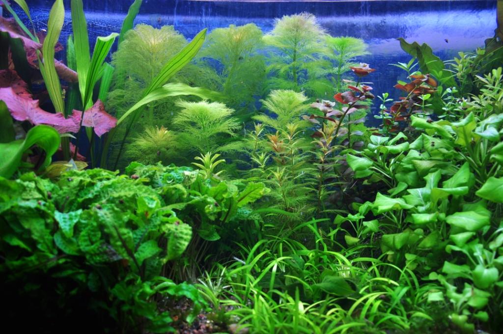 Витязь, если нимфея будет расти, то эх. нежному и д.р растениям рядом не будет света хватать, и валлиснерия в центре ни к чему - ею лучше оборудование прикрыть.