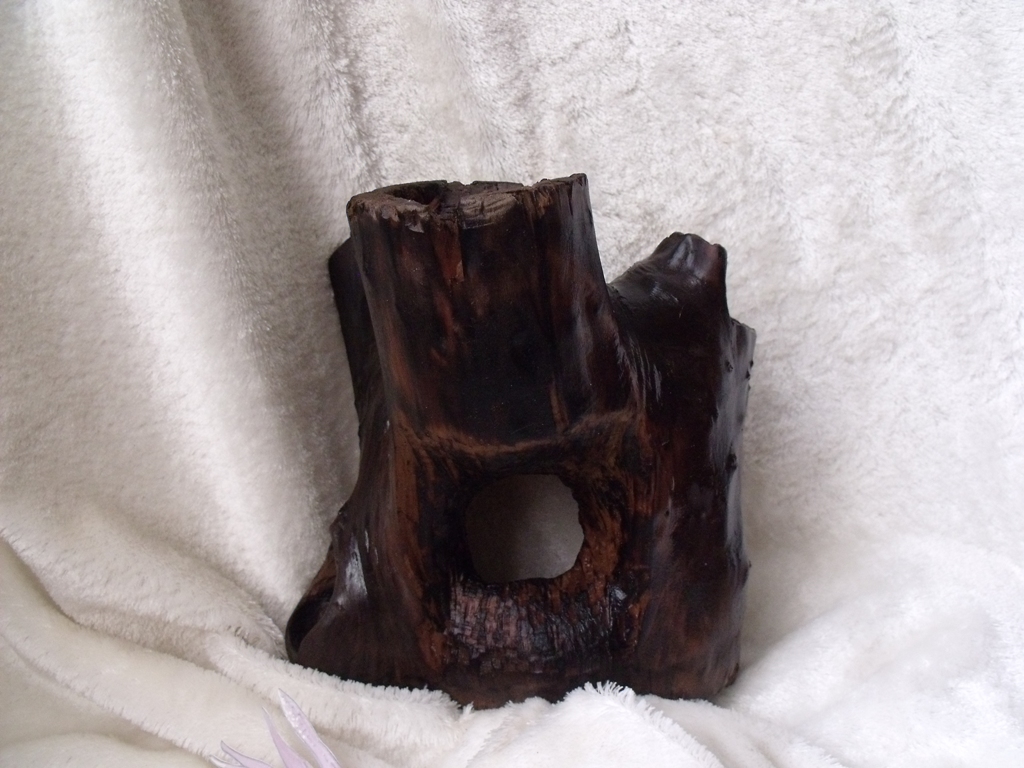 коряга ольха размеры длина 23см диаметр трубки 9см ,внутри отверстие диаметр 3см ,есть раскол.глубина отверстий 9 и 12см,обработана,тонет цена 150грн