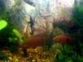 вот, что хочу рассказать, так это, что окрас самца который с самкой , и окрас холостяков в общей акве, стал абсолютно разным. если бы не знал сказал бы, что другой вид. сетка-чешуя очень контрастна на малиновых боках, а спина и брюхо стали почти желтые, серого совсем мало, часто расправленые грудные плавники - красные с ярко-жёлтой прожилкой. возможно это связано с температурой воды 29, но сейчас он выглядит очень нарядно. просто - бомба  . самка со своим красным платьицем с неоновой окантовкой, почти золушка рядом с ним.