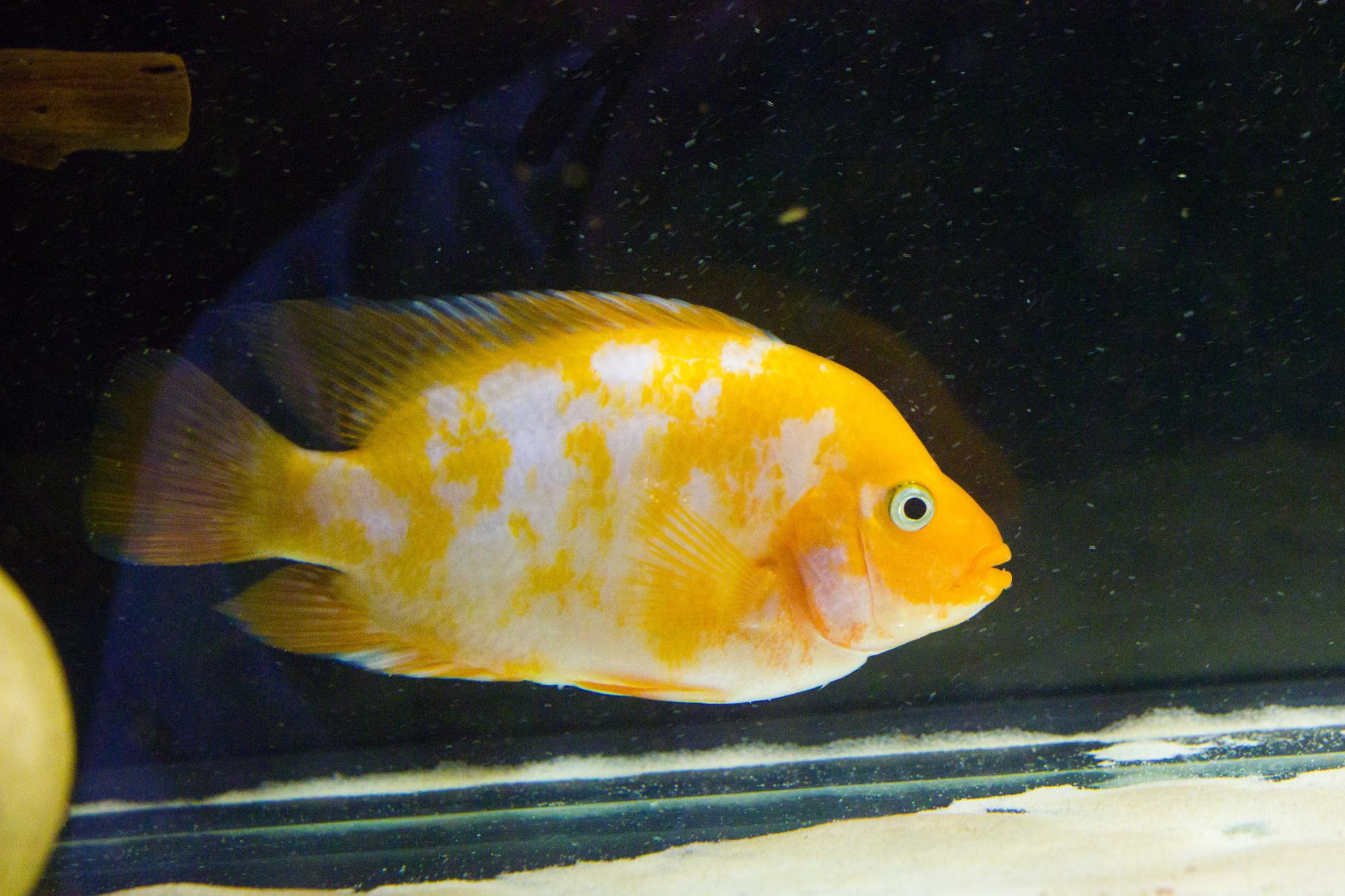 Доброго времени суток! У меня новость, самый маленький цитрончик перелинял и теперь белый с желтым(пятнистый), по началу я подумала, что его хорошенько побили, весь какой-то пятнами, будто чешую потерял, а через недельку стал почти чистым. Началась линька с живота и плавников, но вот вокруг глаз стало чисто черным.А вот самый большой пока такой же полосатый)