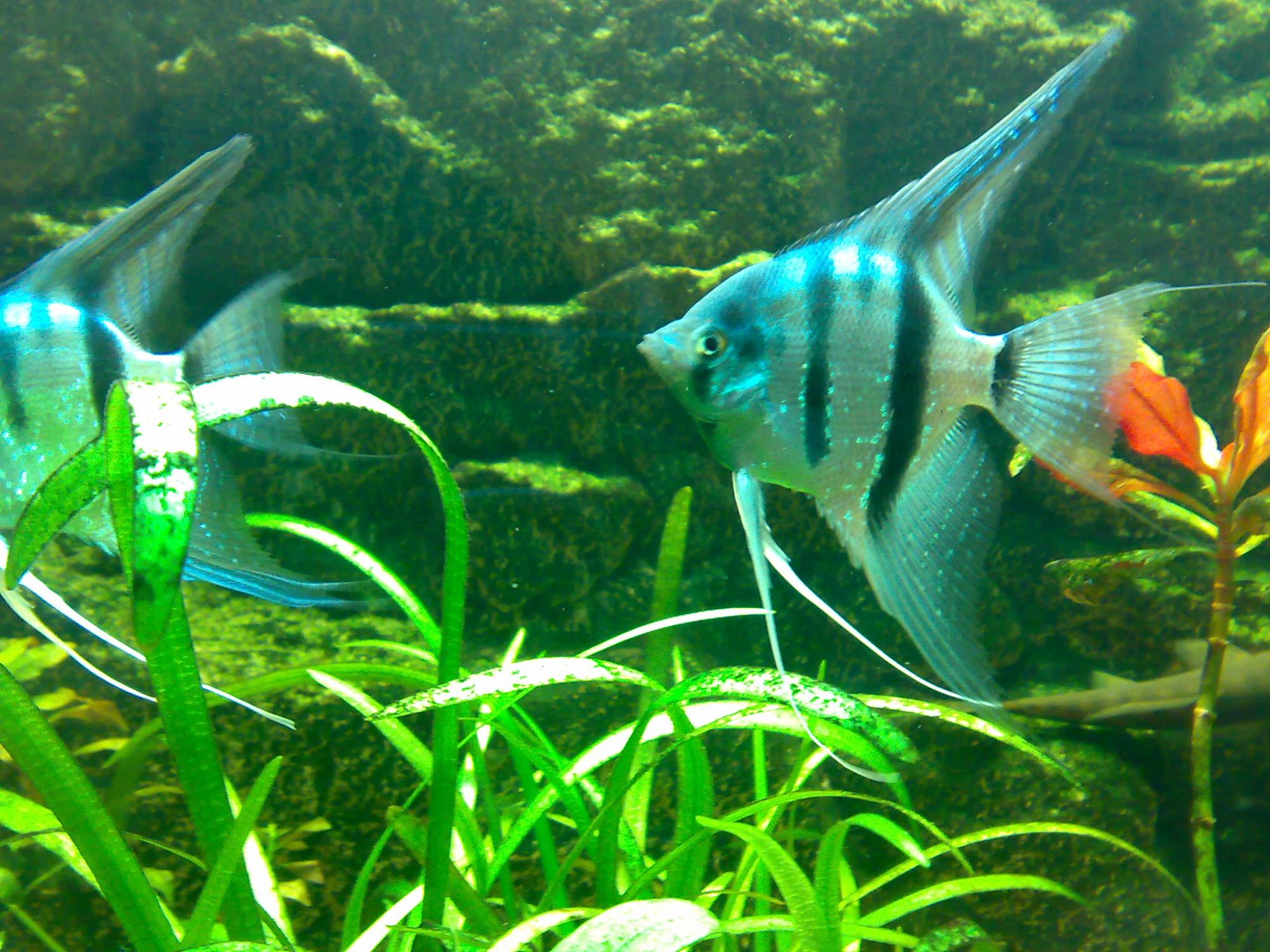 Прошло 1,5 мес. Скалярки почти выросли и начали делить территорию.