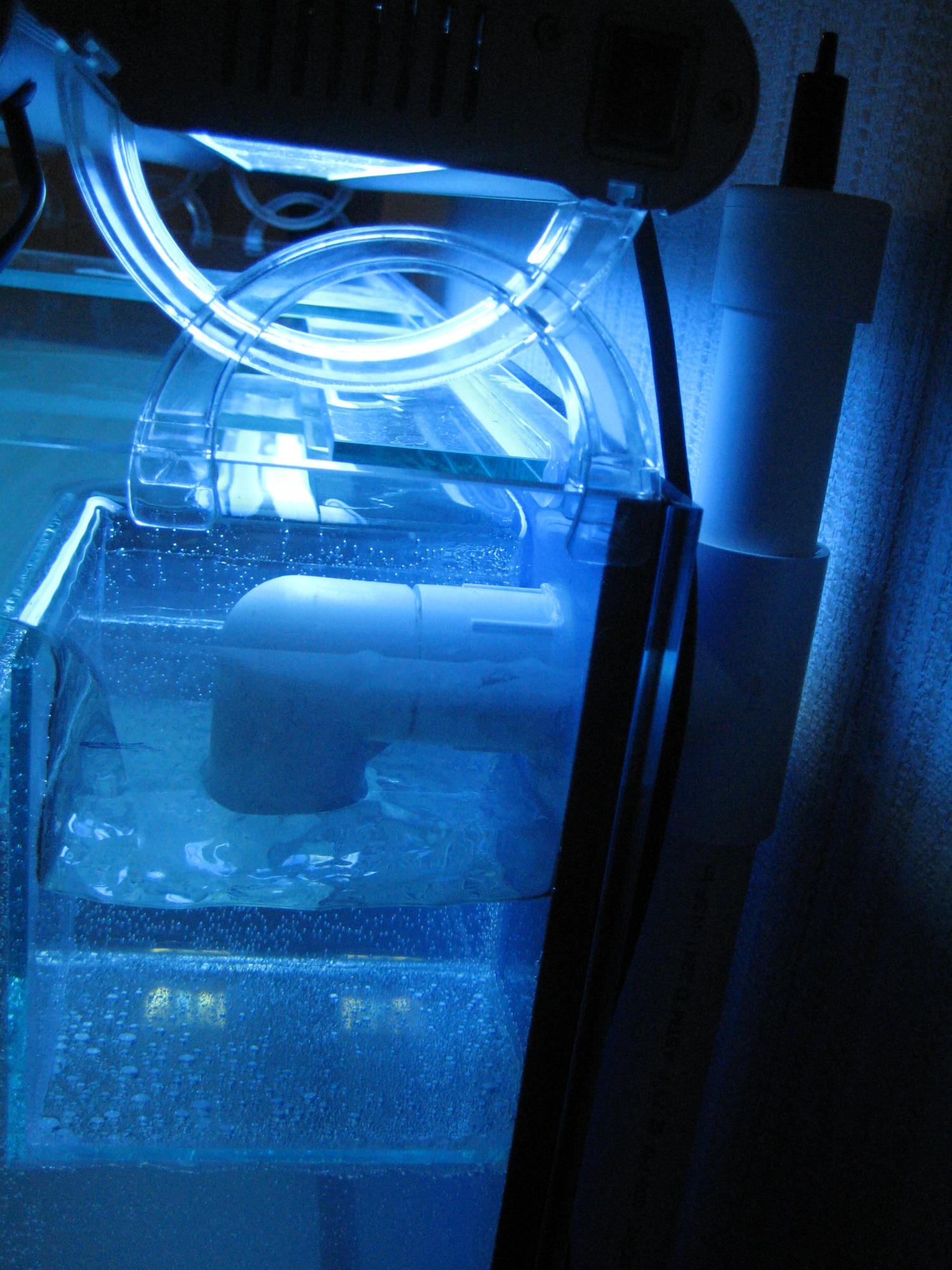 первая проблема с которой я столкнулся это баланс воды. А моем малом аквариуме стоит стеклянный перелив делал я его сам и честно говоря очень доволен результатом. По итогу когда в нем испаряется вода то уровень воды везде остается прежний, кроме отсека где стоит возвратная помпа. там же я разместил и авто долив. и все работает как часы. А вот в новой банке в ходе наблюдения заметил что в последнем отсеке объем практически не меняется. И так выставил я уровень в аквариуме затем с помощью регулировки крана на сливной трубе настроил уровень воды в стакане так что он совпадает со скоростью возвратной помпы. итог ( все работает нормально шума не где нет но есть одно но!!!) когда вода испаряется из аквариума естественно что уровень в аквариуме падает а это значит что и в сливной стакан попадает меньше воды. В следствии падения уровня в стакане он доходит до его носика и начинает подсасывать воздух в сливную трубу и только потом в уровень в отсеке где находиться возвратная помпа начинает понижаться