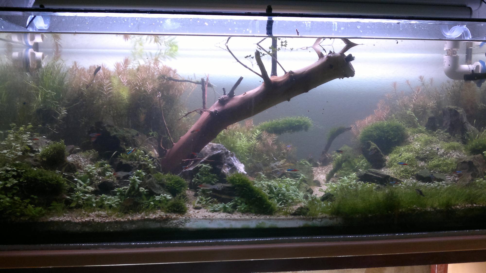 Да,спилы я конечно же уберу)).Просто хочу растянуть удовольствие в создании скейпа.Это я еще мало мха привязал)).По задумке у меня коряги будут мшистые.Тем более я копирую место,которое мне понравилось,а там коряги были все во мхах.А в правую часть обязательно добавлю коряжек.У меня их много,поэтому есть из чего выбор сделать.Как раз сегодня после тренировки добавлю коряжек.А сейчас скину фото скейпа после подмены воды