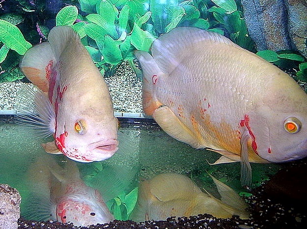 Я кормлю своих астронотусов только креветкой и дождевыми червями .У них окрас становится ярким и они никого у меня нетрогают в 750 л аквариуме.