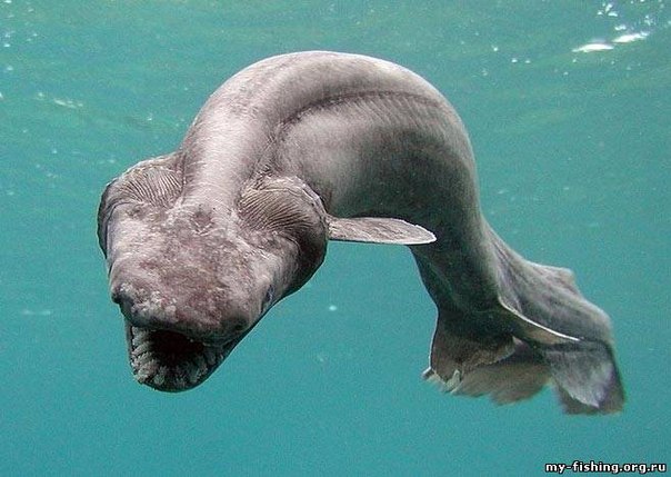 Это страшное существо, похожее на рыбу-угорь с зубастой пастью, случайно попало в трал возле берегов Шпицбергена. Необычный улов рыбакам помогли идентифицировать сотрудники Мурманского морского биологического института. Как сообщили ученые, плащеносные акулы живут на глубине 600-1000 метров и практически недоступны для изучения человеком, поэтому они редко попадаются рыбакам в сети. К сожалению, дальнейшая судьба улова российских рыбаков неизвестна.
