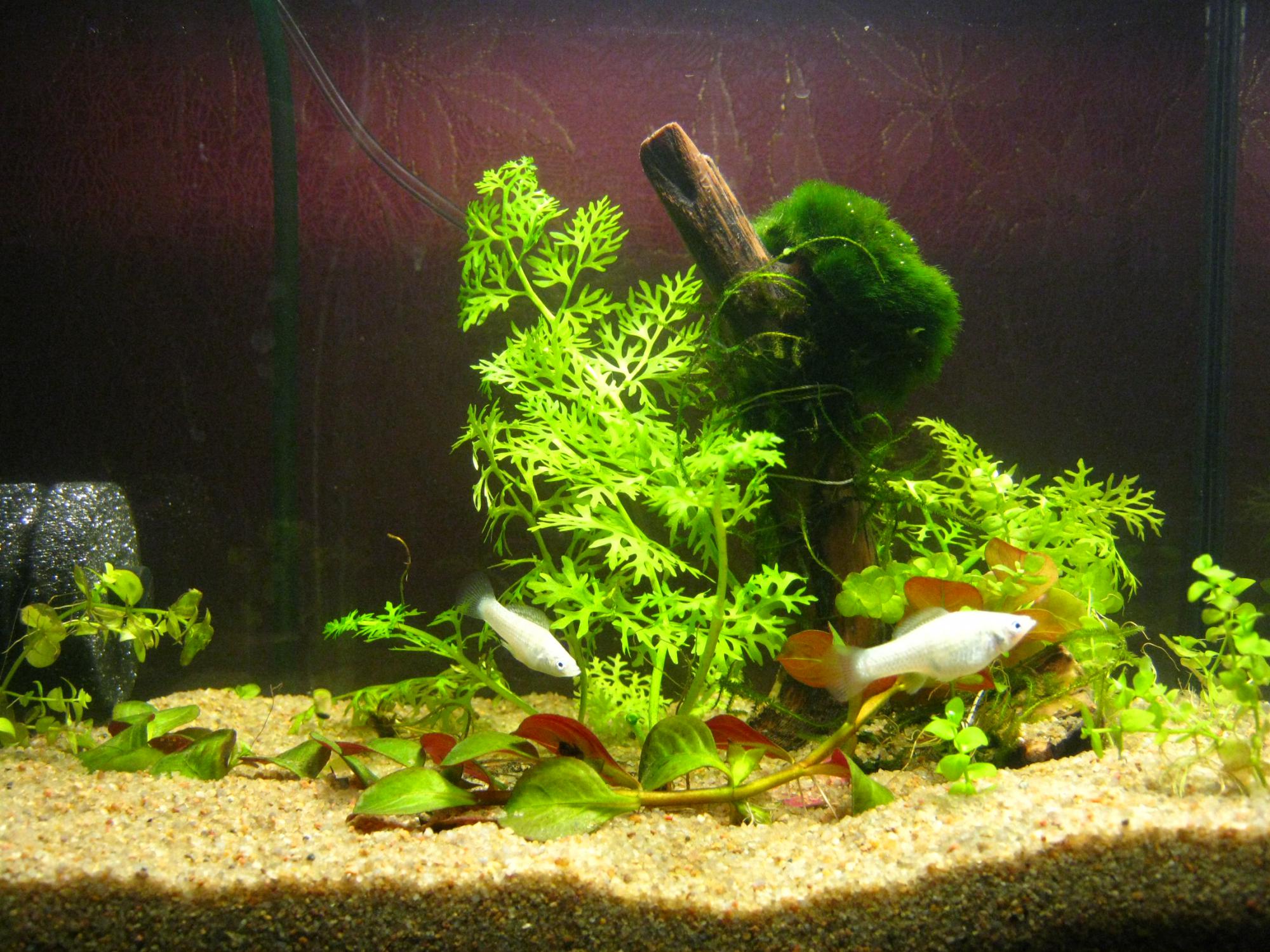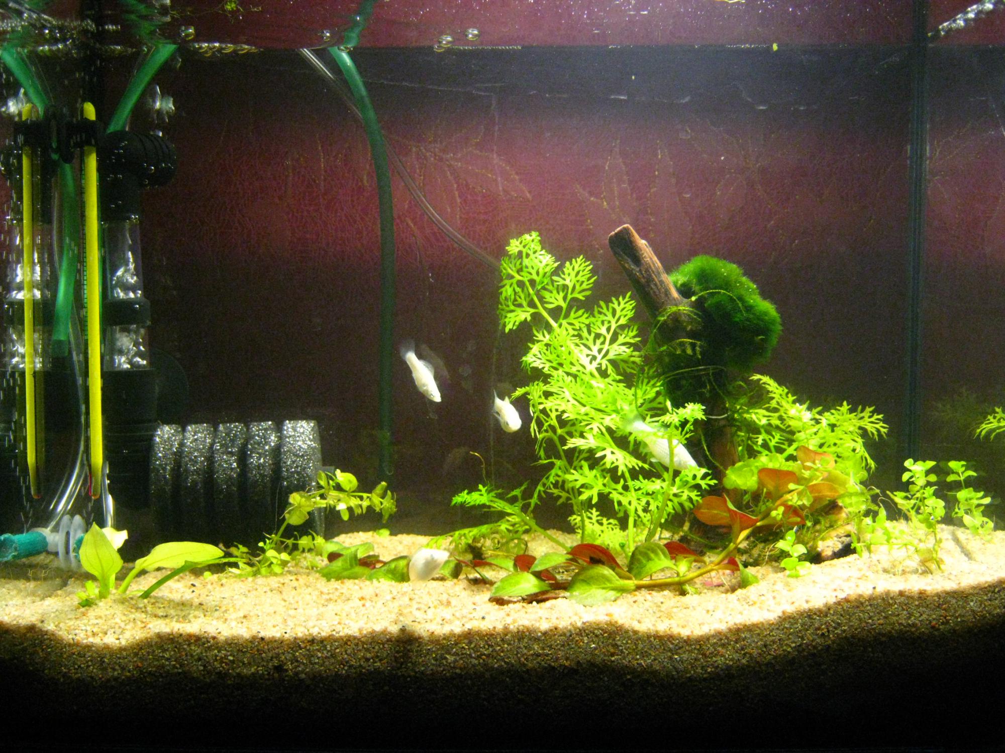 с растениями у меня было непонятно так как один папоротник рос нормально и не от чего не страдал, яванский мох у меня стал коричневым выбрал более менее зеленые веточки (надеюсь будет расти)