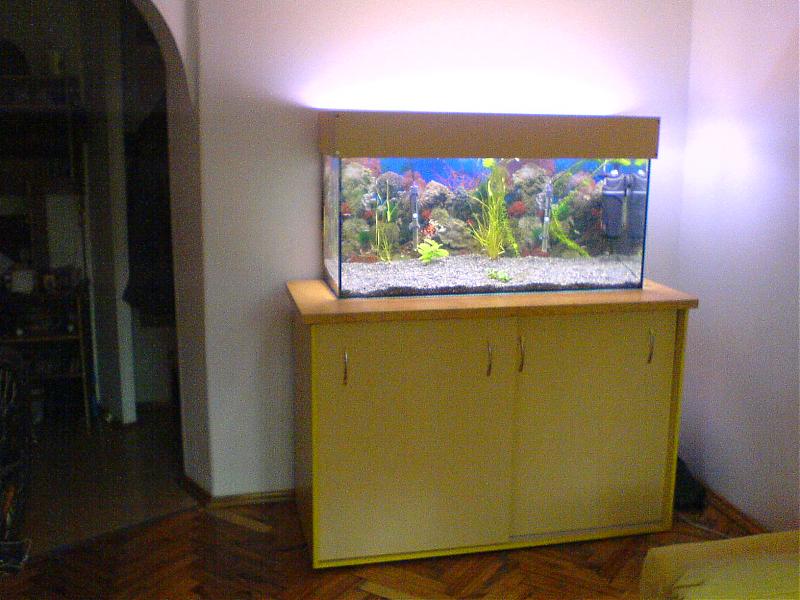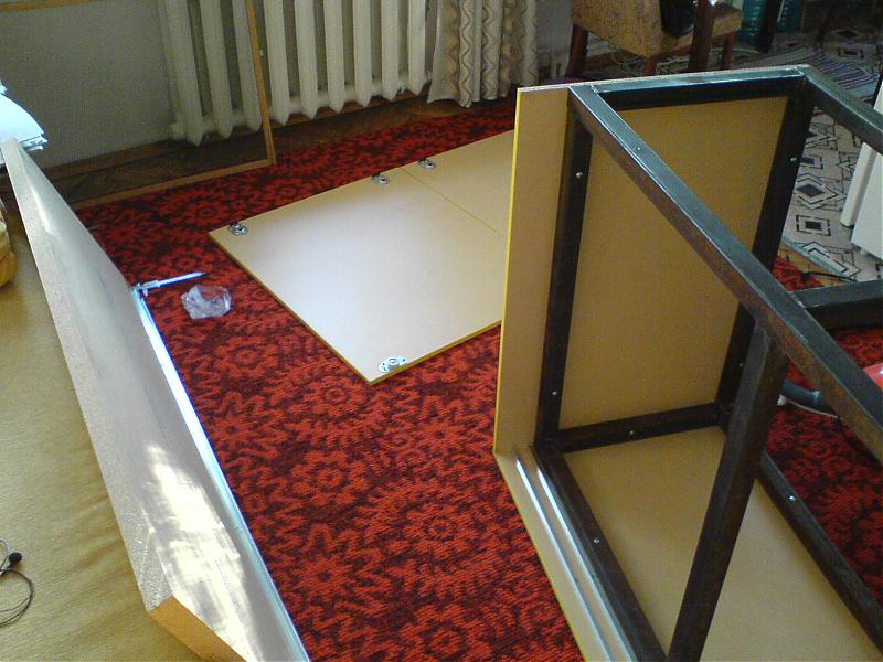 Хочу поделиться своими достижениями в области тумбостроения. Сочинил тумбу под 270л аквариум, очень доволен результатом. Цена изделия, включая все издержки составила: 40 баксов железный каркас, варил сам; 40 баксов столешница производства Швейцарское толщина 38 мм, дсп такое же, толщина 16 мм. Механизм открытия дверей-купейный.