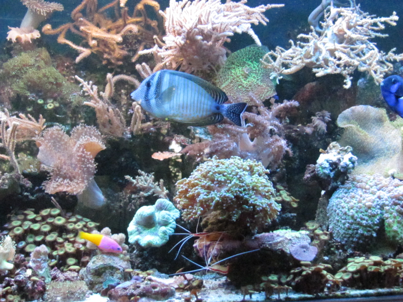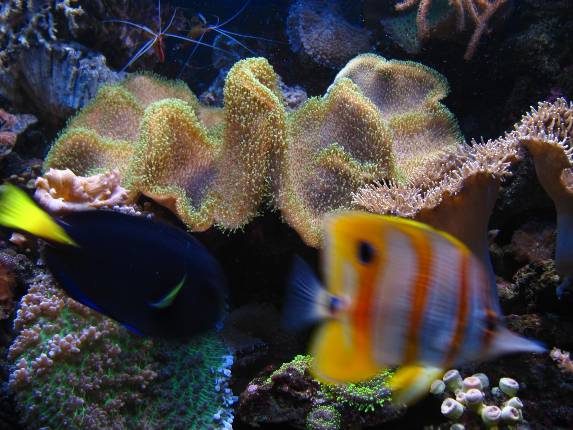 В аквариуме живут как мягкие так и твердые кораллы,из них 2 вида СПС.