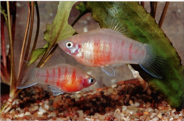 У меня есть один парень, не похожий на остальных всех, с чудным каким-то окрасом - под определенными углами у него черная полоса вдоль всего тела, особенно выше боковой линии:
