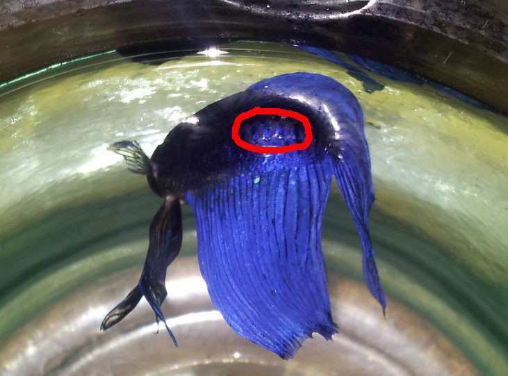 Вот фото.Красной областью пометил ту часть,какая находиться "вне воды" и следовательно,опухшей.Сегодня ночью,петушок впервые зашевелился,сделал вертикальные 2 круга в аквариуме,потом опять на бочек и ничего не кушает.Так согнутым и лежит,видно что хочет выровняться,но не получается.