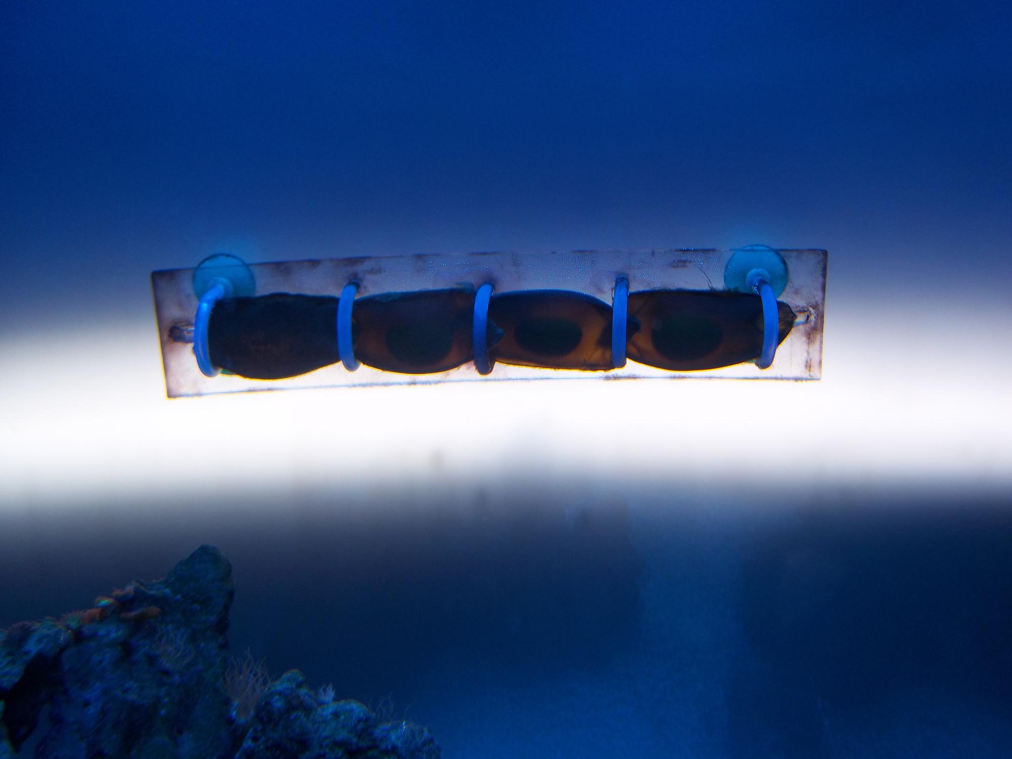 Аквариум с эмбрионами акул. Каких именно не знаю но в аннотации к аквариуму пишут "В нашем океанариуме успешно разводится 12 видов и не прерывно ведутся работы по увеличению колекции..."