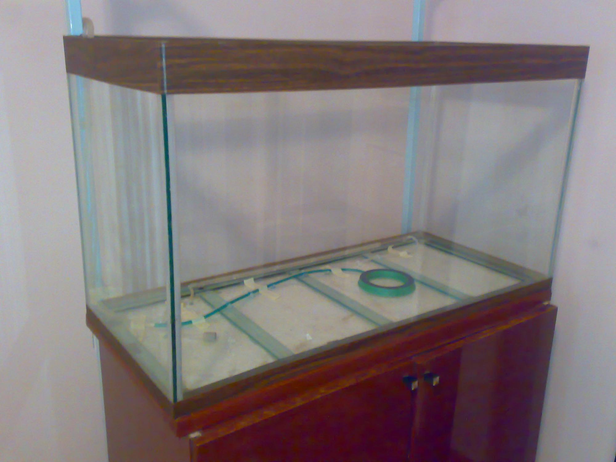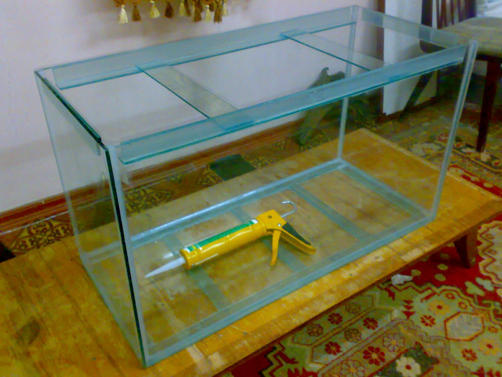 Здравствуйте дорогие друзья по увлечению, хотя увлечением аквариумистику можно по моему назвать лишь образно, скорее это образ жизни. Во первых позвольте отметить исключительную полезность данного форума, как начинающим, так и опытным приверженцам этого увлекательного хобби. Будучи зарегистрировваным на этом форуме уже довольно давно, только теперь решил написать своё сообщение и показать свои успехи, нет, скорее продвижения Наверно, как и у многих, у меня началось всё с 3-х литровой банки и пары гупей Наступая на традиционные грабли менял размеры, объёмы, подходы. И ещё надо добавить, что в нашей стране мы не можем пользоваться всеми благами аквариумной индустрии, в виду неразвитости в нашем государстве этого занятия. Всё оборудование КЕТАЙ, ближайший более или менее хороший зоомаг находится в 750 км, и никаких тестов для хим анализа воды и спец силиконов тут не сыщешь и днём с огнём. Поэтому приходится эксперементировать и действовать наудачу. Силиконы тут у нас лишь монтажные, турецкие, если повезёт, а если не повезёт, то опять же КЕТАЙ. В общем, устав от постоянной ржавчины каркасов, и грубых форм, решился на склейку бескаркасного аквариума размерами (ДШВ) 850:400:500 из чудом подвернувшейся витринной 7-ки (стекло у нас, толще 5-ки, ещё пущий дефицит, и даже можно сказать дикая редкость). Щас постараюсь выложить фото. Не обошлось без проклятых пузырей, как ни старался, устранить их не смог, но тут, в этой теме прочитал, что это не смертельно критично. Вначале тренеровался на меньших объёмах (30, 45, 60 литров из 5-ки для друзей) друзья помогали, а эту банку клеил в первые один, поэтому разгул в зазорах весьма большой, от 0,2 до 2,5 мм. Не знаю что из-за этого будет. Предчувствую, пинков будет много, но как могу так и получилось. Стекло кроил и резал и обрабатывал сам. Банку клеял по инструкциям Павла Морозова, да пошлёт ему Всевышний Процветания)))) Расчитываю на радушный приём, и дальнейшее доброе, в конструктивном ключе, общение. С уважением ко всем осилившим пост до конца)))) Кстати, аквариум щас на ходовых испытаниях, сегодня третий день стоит на тумбе во дворе. Пока видимых изменений в конструкции не заметил. Тумба, из под телевизора, усилена металлическим профилем, позже выложу и фото