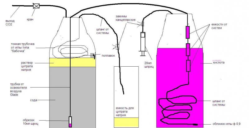 3. Необходимость 1раз/3-4 недели сливать раствор ЦН из содовой бутылки и вдувать 50-100 кубов в