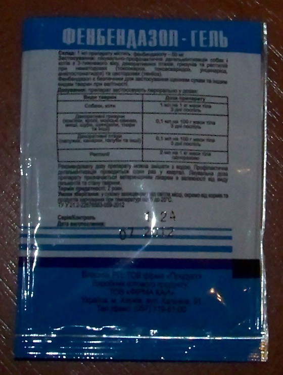 UPD 2012/10/05 попробовали: не помогло! толи дозу надо больше давать, толи это неправильный фенбендазол.